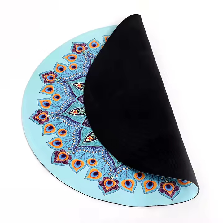 Tapis de yoga rond extra large en daim et caoutchouc naturel imprimé sur mesure